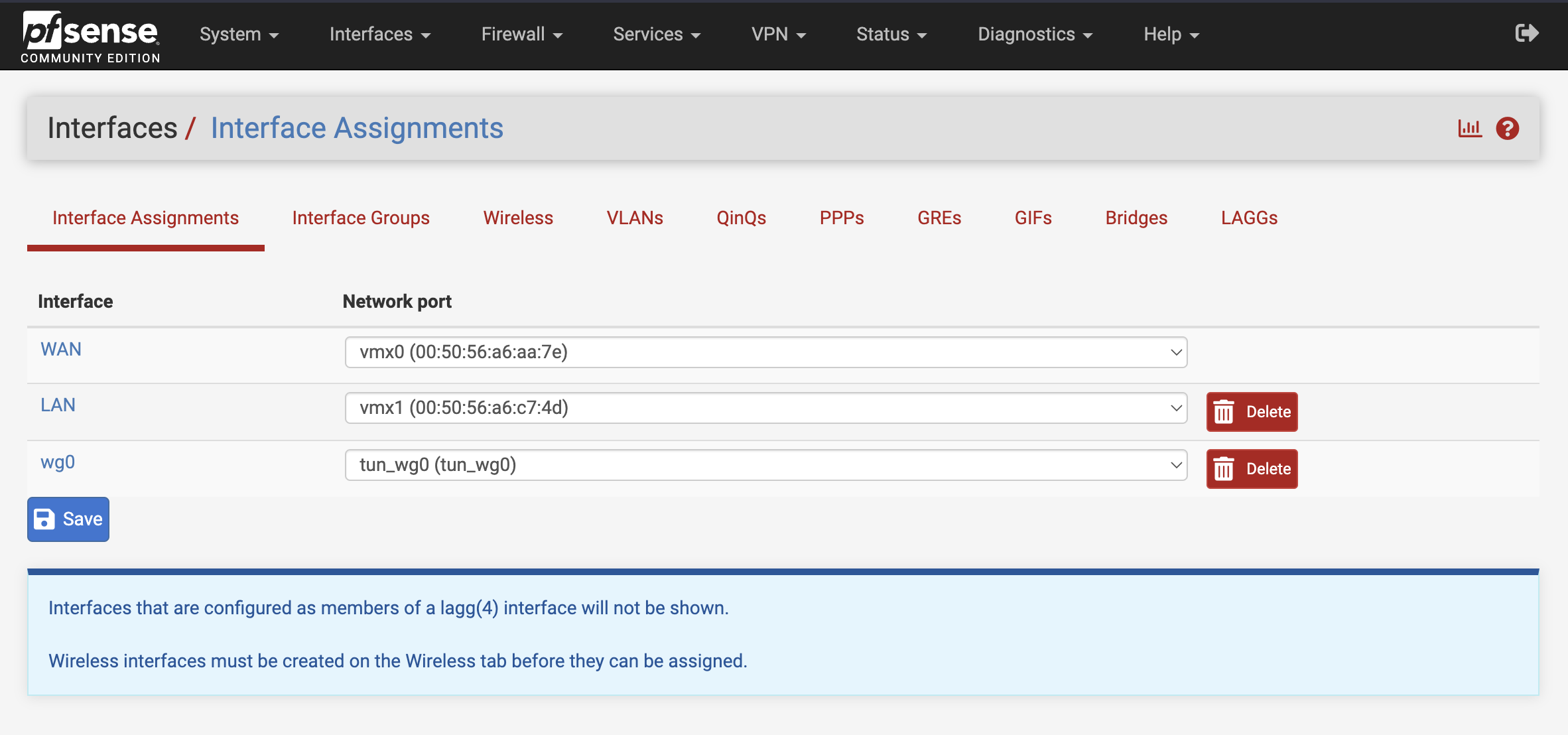 1. Wireguard interface assignment and settings