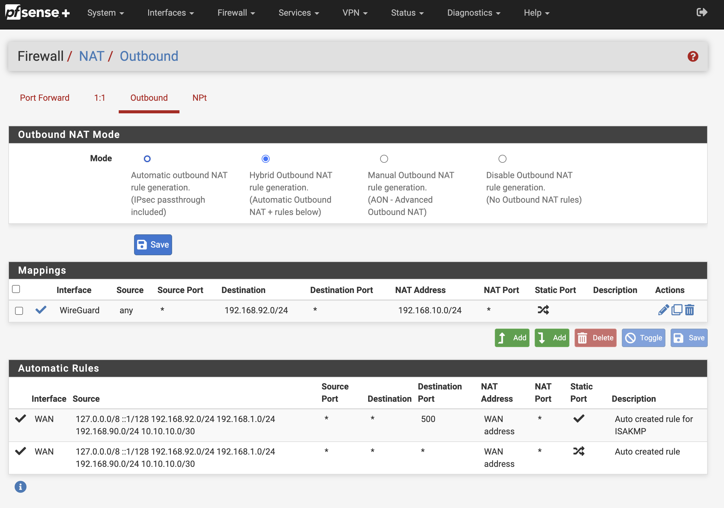 Set Outbound NAT Mode to Hybrid