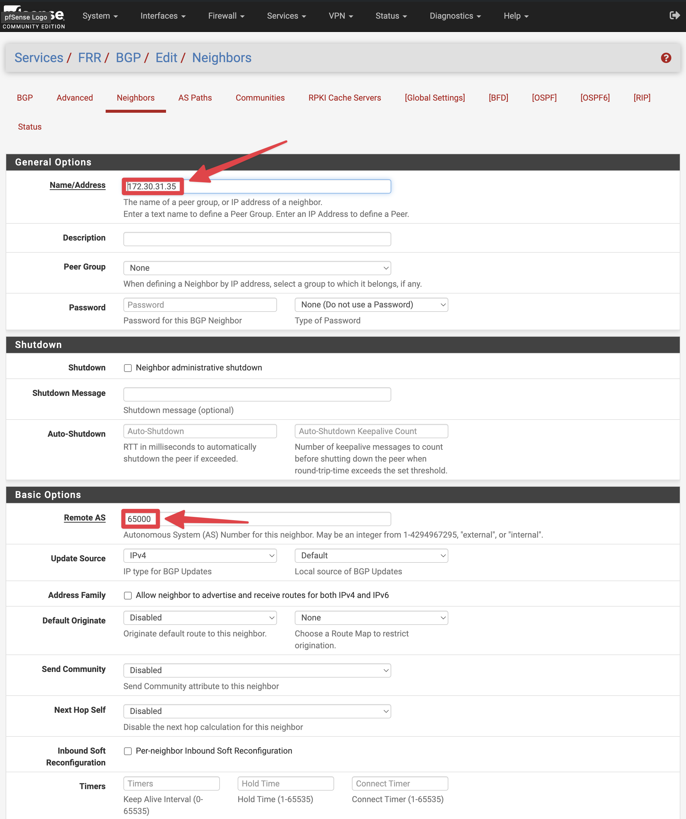 user@dns5:~$ sudo systemctl enable --now exabgp.serviceCreate neighbor in pfSense