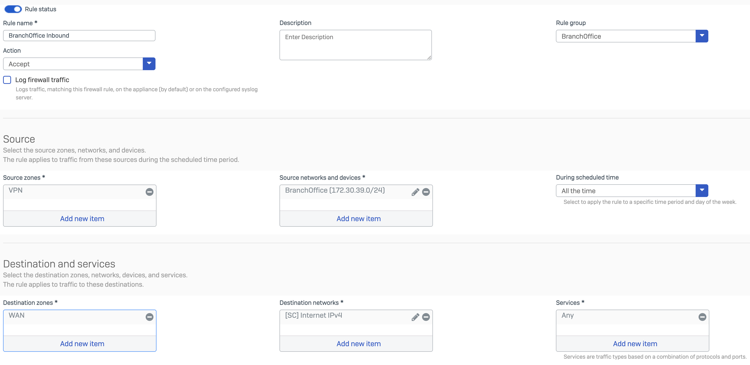 | Source Networks | Internet IPv4 (This is a hostgroup in Sophos Firewall) |
